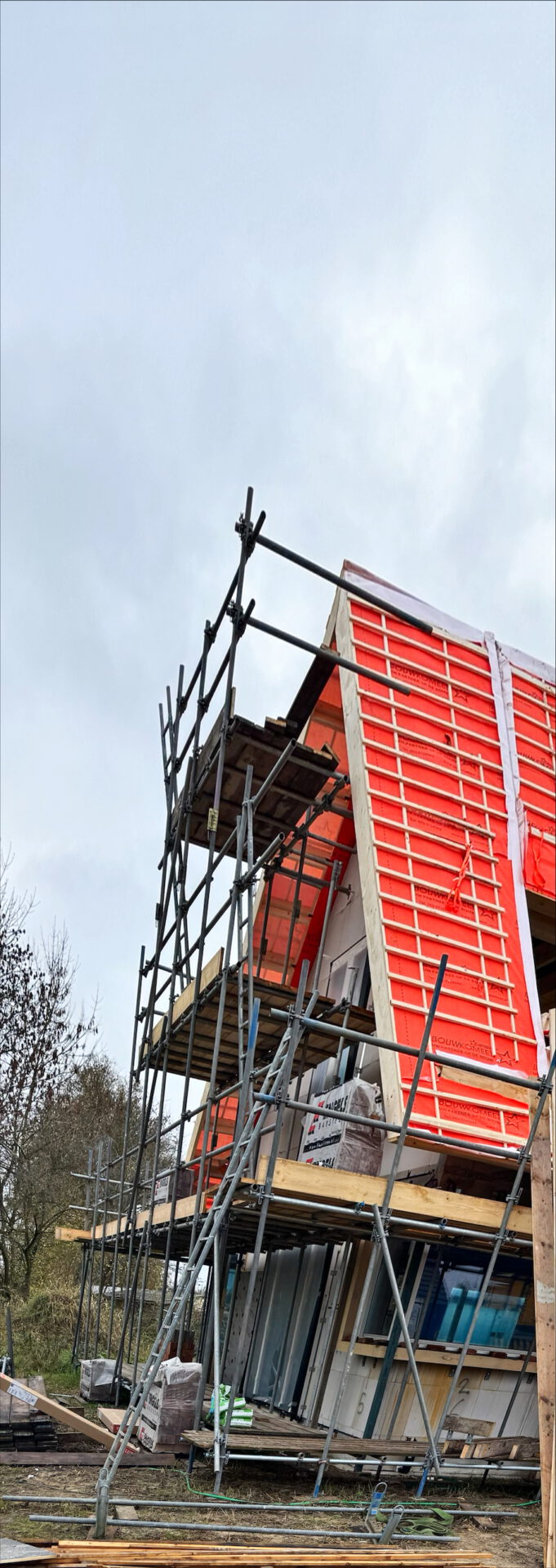 Leveren en monteren van de kap, vloerelementen en HSB-wanden voor een bijgebouw bij een woning.